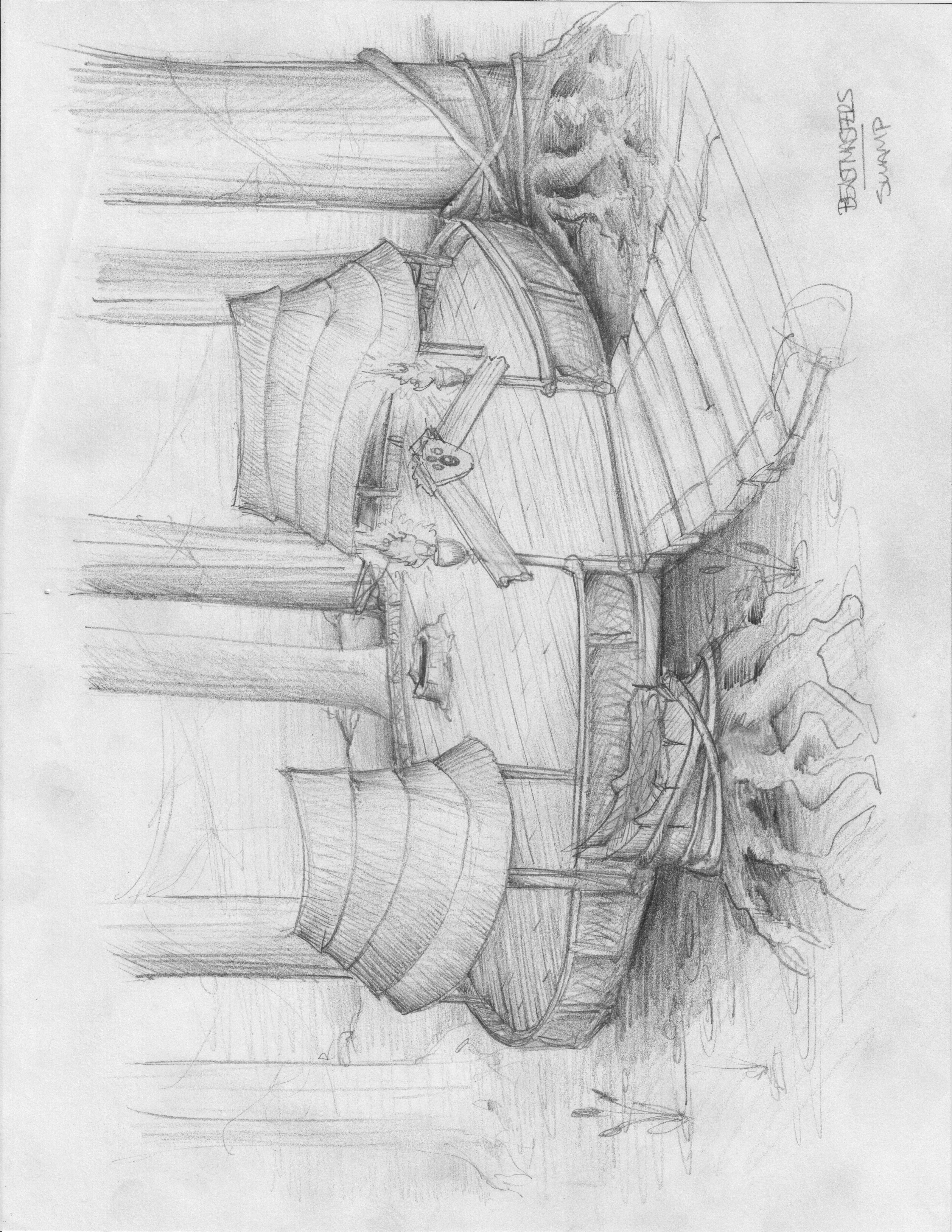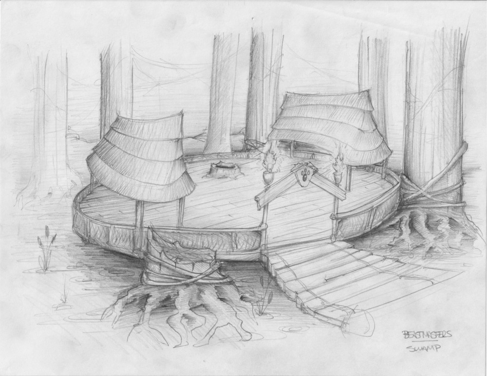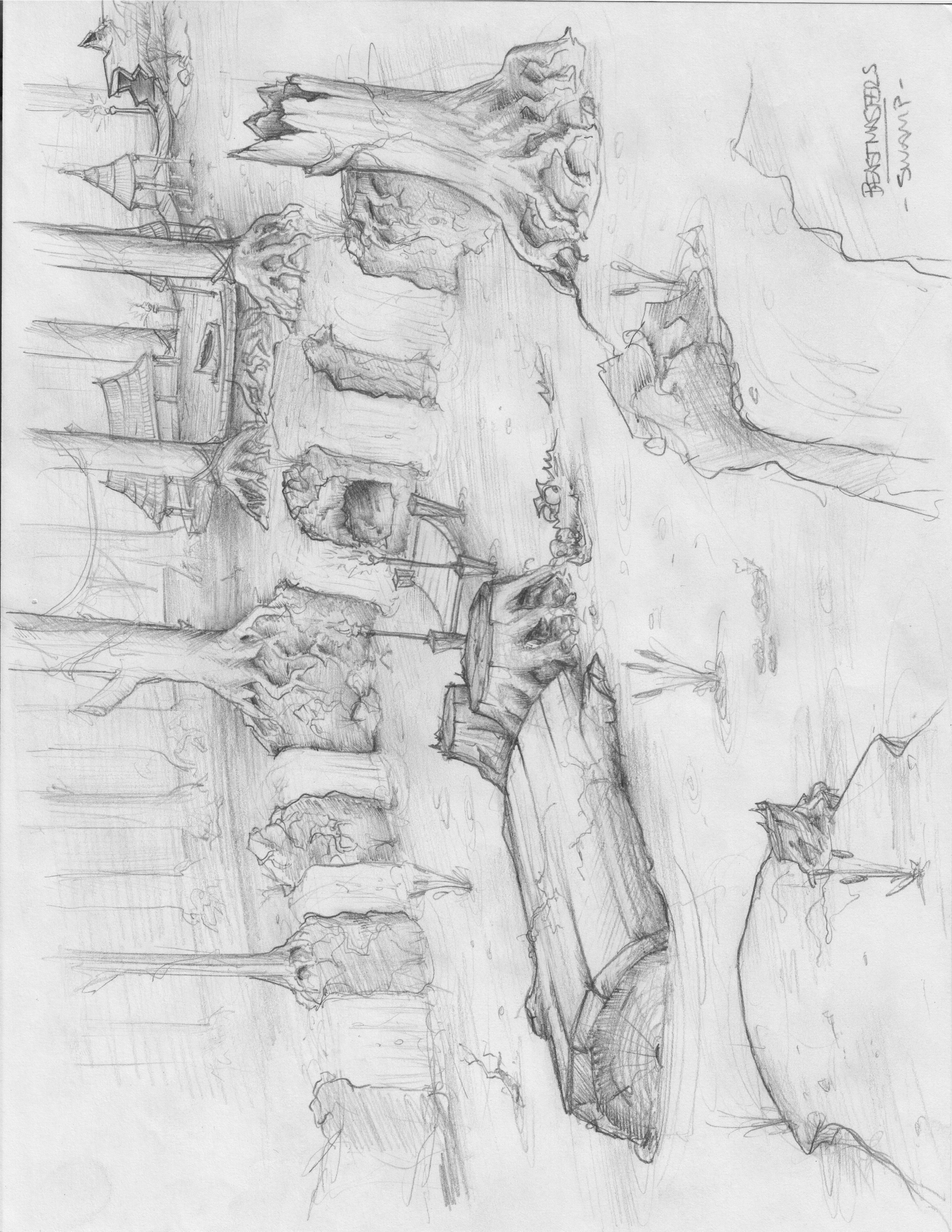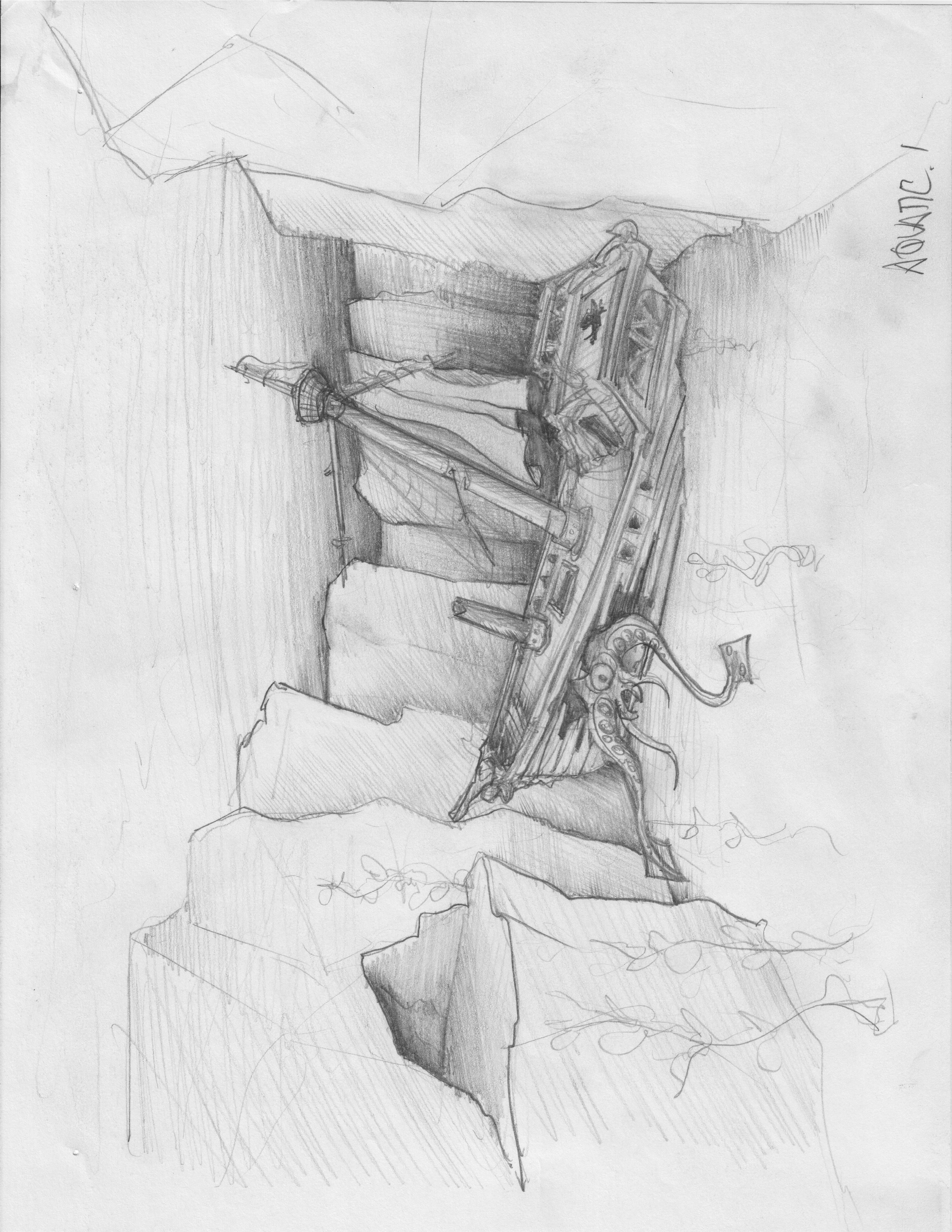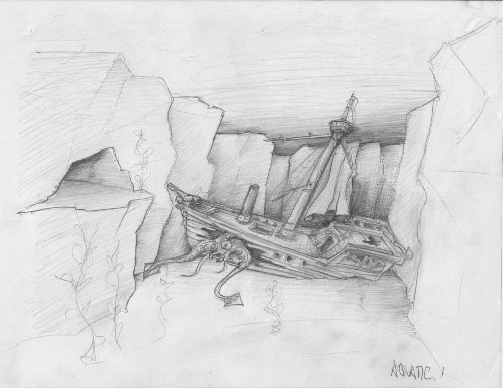 Lastly for now, we've got a few level concepts. These "Beast Masters" concepts would of course eventually become the Beast Makers home. I'm not sure what "Aquatic" is supposed to be (or even which game it's for), but it looks quite Lost Fleet-y.